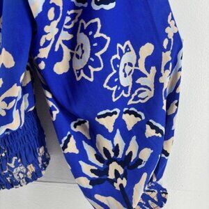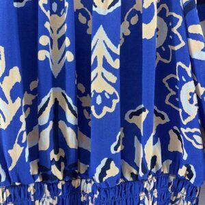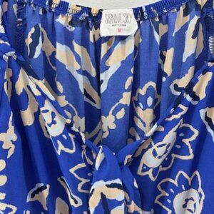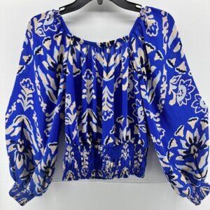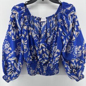 Sienna Sky Top M Boho Blouse Crop Blue White Floral Elastic Waist Festival Flowy