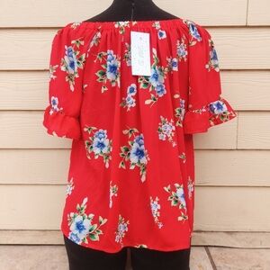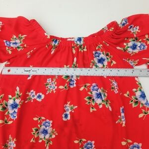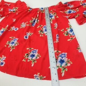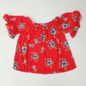 Sienna Sky Top Off Shoulder Orange Floral Blouse Women M Ruffles on the Sleeves