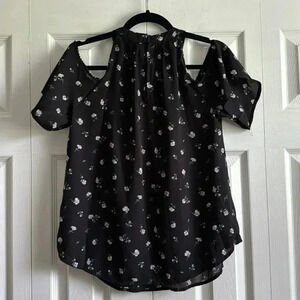 Sienna Sky Women's Cold Shoulder Top Size Small Black Floral Print