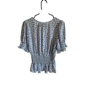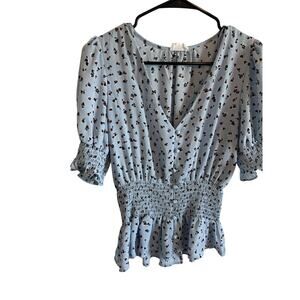 Sienna Sky Women's Medium Blue Floral Short Sleeve V-Neck Peplum Shaping Blouse