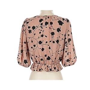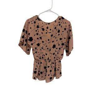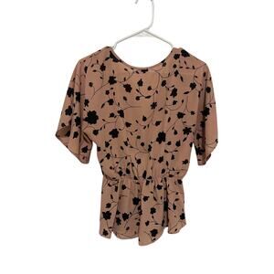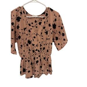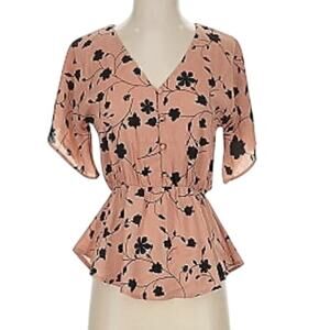 Sienna Sky Women's Medium Pink Black Floral Short Sleeve V-Neck Button Blouse