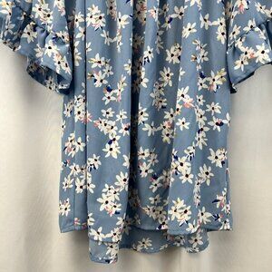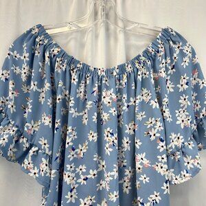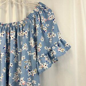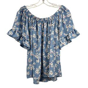 Sienna Sky Womens Short Sleeve Off Shoulder Floral Top Blue/Multi Size XS