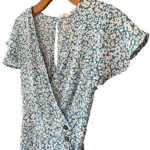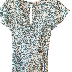 Sienna Sky XS Turquoise LibertyFloral Maxi Faux Wrap Lined Ruffle Sleeve Dress