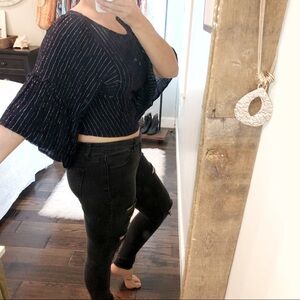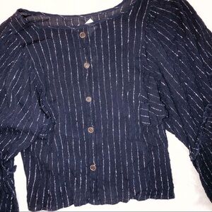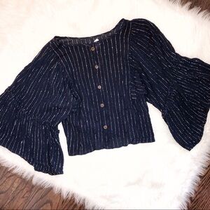 Sienna Sky navy blue bell sleeve small blouse. Button detail on back.