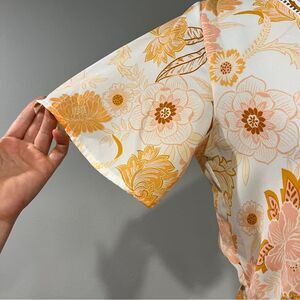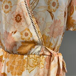 Sienna Sky Orange and Cream Floral Mini v-neck fake wrap Dress size XS