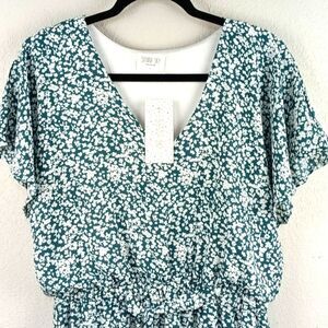 Sienna Sky Women's Floral Green / White V Neck Boho Midi Dress sz L Feminine
