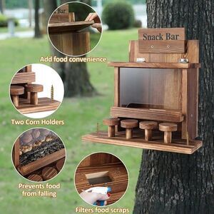 Sierjian Wood Squirrel Feeder, Large Squirrel Feeders for Outside, Durable Chipm