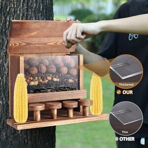 Sierjian Wood Squirrel Feeder, Large Squirrel Feeders for Outside, Durable Chipmunk Feeder, Squirrel House with Removable Front Panel and Corn Cob Holder