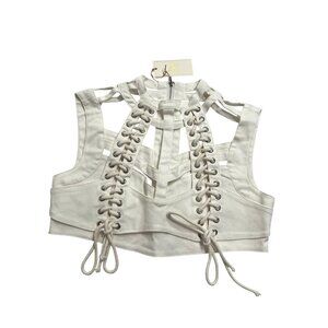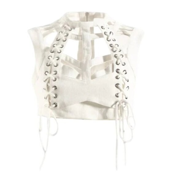 Embrace elegance with our Bustier Top in Ivoire. This luxurious piece features drawstring details, a stylish cut out detail, and a convenient back zipper for effortless wear. Elevate your style with this exclusive top that exudes sophistication.