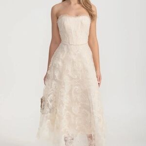 STRAPLESS LACE GOWN WITH FITTED BODICE AND FLORAL MOTIF - Absolutely stunning... A lifetime piece.