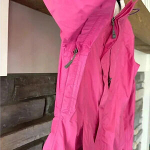 Great preowned condition. Some wear on inside collar see photo otherwise no other flaws noted. Underarm vents, tons of pockets and easily sackable into carrying pack is perfect for the outdoorsy, hiking and traveling type. Size XS. Outdoor, hiking, travel, camping, rain gear