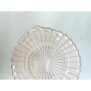 Gorgeous pink depression glass Sierra Pinwheel style 1930's serving plate. There are itirations of this without the handles, the one with handles is a bit more verstatile and easier to carry. It's hard to believe how much longevity depression glass plates have being that they are about 100 years old! Such a gorgeous piece with lots of character.