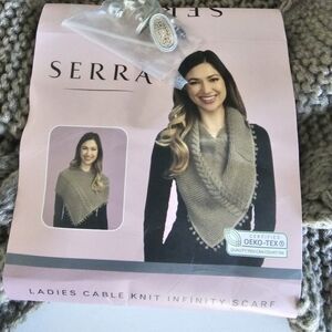 Sierra Scarf Chunky Knit Cowl Neck Gray Infinity Warmer Asymmetrical Cable knit