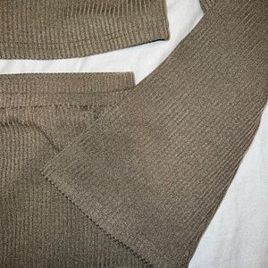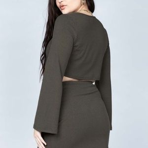 Forest green two piece set from Princess Polly! Both pieces look cute together and on their own. Top is cropped and has slight bell sleeves. Skirt has elastic waistband, stretchy and comfortable. It's super soft, feels like loungewear.