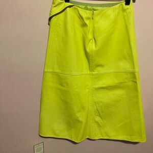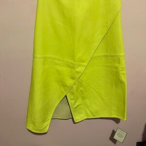 Fluo highlighter yellow. Super neon in person. Leather cut-out skirt. No tag. Never worn.