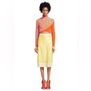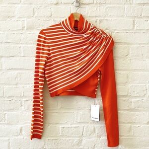Sies Marjan || Jenn Crepe Wrap Crop Turtleneck Sweater Stripe Blood Orange L NWT