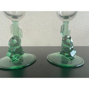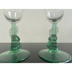 Siesta Cactus Margarita Glasses Green 7" Tall Set of 2 Cocktail Glasses Sombrero