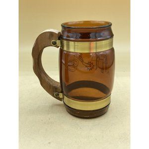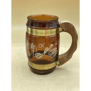 Siesta Ware Vintage MCM Western Tiki Barware Walnut Sleeve Beer Glass & Mug