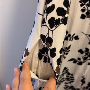 Elegant sleeveless dress with a leaf pattern. Cream base with black accents. Perfect for casual outings.