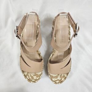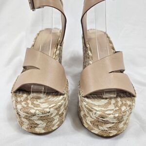 Sigerson Morrison Arien Platform Wedge Espadrille Sandals in Beige Nude - Size 7