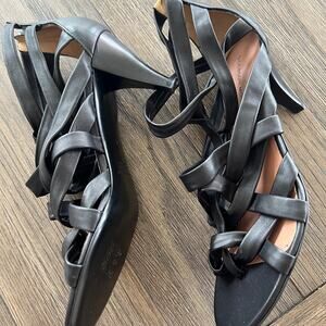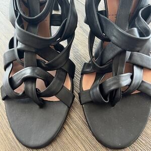 Sigerson Morrison Basma Block Heel Sandals Black Metallic Size 9.5
