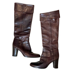 Sigerson Morrison Brown Leather Tall Cuffed riding Boots Women's Size 8.5