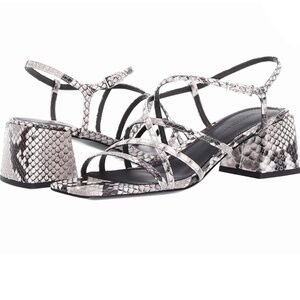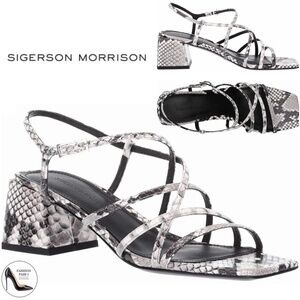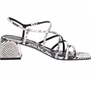 Sigerson Morrison Ellia Gray Snake Leather Ankle Strap Heeled Sandals Pumps 38