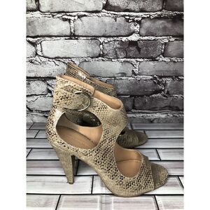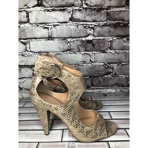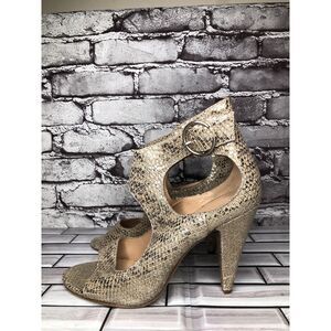 Selling Singerson Morrison Silver Leather Snake Print Open Ankle Strap Heels Women 8.5US/39EU