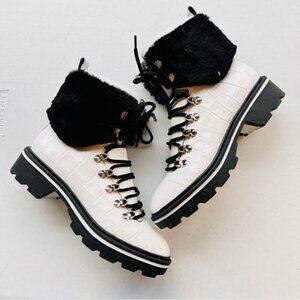 These do have a small amount of cracking in the white ‘snakeskin’ and there is also some discoloration on the tongue of one of the boots as well as a couple small scuffs.