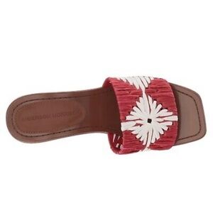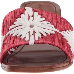 Sigerson Morrison Marnin Red White Brown Leather Heeled Slide Sandals Mules 8