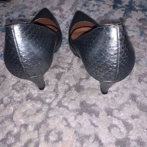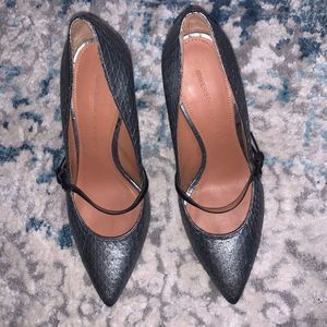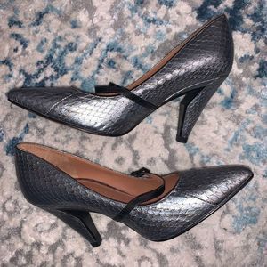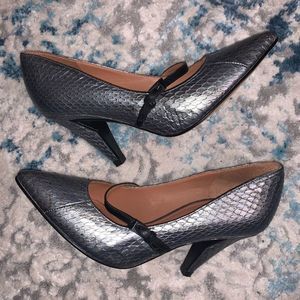 Sigerson Morrison Mary Jane snakeskin pointed toe metallic pumps