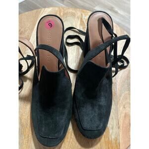 Sigerson Morrison Poise Suede Ankle Wrap Loafer Pumps, Block Heel, Black, size 9