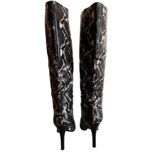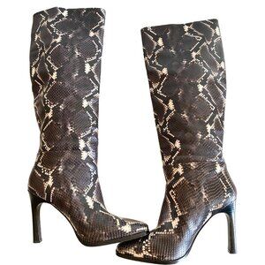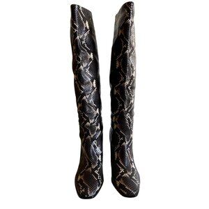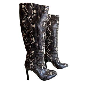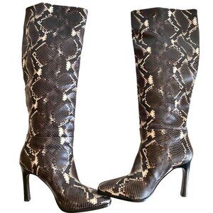 Sigerson Morrison Python Embossed Knee-High Leather Boots 40 Black Brown Snake