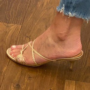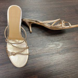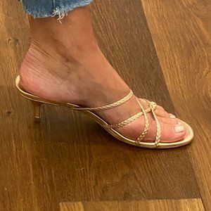 Nappa Luxe Leather in metallic rose gold. 2.5" kitten heel. New with tags and dust bag in box.