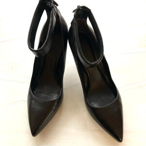Sexy high heel pumps with ankle strap and back zipper. Heel: 3.25”. Leather sole. Excellent condition.