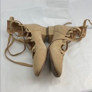 This is a beautiful pair of Sigerson Morrison Beige Suede Round Toe Ankle Height Ballet Wrap Shoes