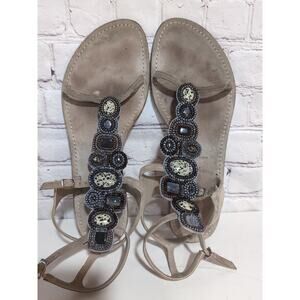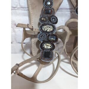 Sigerson Morrison Tan Suede Beaded Stone Sandals Ankle Straps Gladiator Size 9
