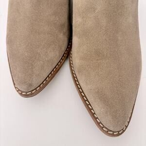 Keywords & Style Tags: Sigerson Morrison boots, taupe suede booties, pointed-toe ankle boots, designer shoes, minimalist style, chic footwear, versatile booties, timeless fashion, everyday essentials, modern classic, boho, bohemian, western.
