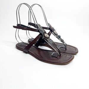🍋 Sigerson Morrison • Women’s T-Strap Beaded Leather Sandals Size 7