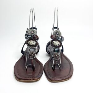 Sigerson Morrison Beaded Leather Sandals - Size 7