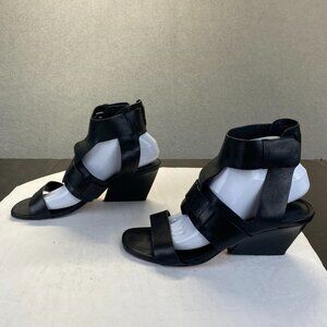Sigerson Morrison,Womens,Ankle Strap Buckle Black Wedge Sandal, Size 9B