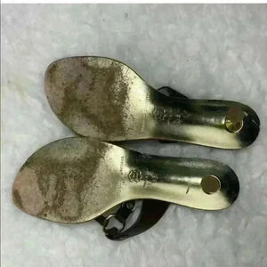SIGERSON MORRISON BROWN LEATHER STRAPPY THONG SANDALS SHOES KITTEN HEELS