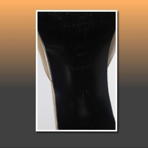 Nice pair of Sigerson Morrison beige, leather, open toe, slide sandals. Heel: 3”. Wear on soles, heels, insoles and uppers. Size: 7.5B