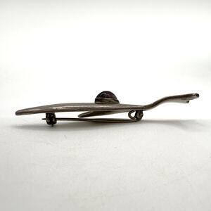 A unique modernistic pin by famed Mexican silver artist Sigi Pineda. A sterling silver fish pin with open mouth and large amethyst eye. It has several stamps in the back: "Sigi Taxco", "Sterling Hecho en Mexico" a "925" mark, and another mark that looks like 95 in a cartouche.