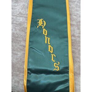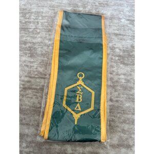 Sigma Beta Delta honors society graduation stole in green and gold. New in package and never used. Has symbols on one side and “Honors” on other side.