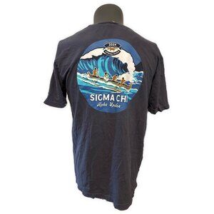Sigma Chi Men’s Navy Blue Yellow Alpha Upsilon Spring Rush T Shirt Large