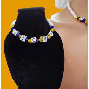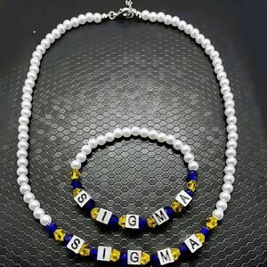 Sigma Gamma Rho Blue and Gold Necklace Bracelet Set