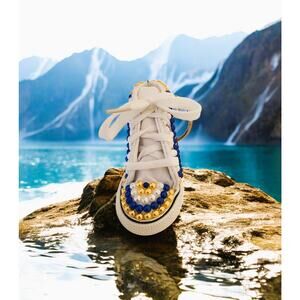 Sigma Gamma Rho Keychain White Rhinestone and Pearls Custom Made Shoe