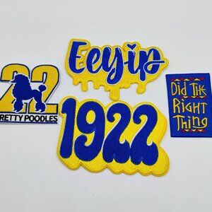 Detash stash - we are done making jackets and still have high quality sets of patches for the Pretty Poodles out there. The buyer will get this set of 4 patches as shown. They are iron on, however, we also sew ours down for max durability when we used them on our jackets and bags. These can be used to make junk socks, trucker hats, camo or denim jackets or bags. We will not restock so grab them while you can.