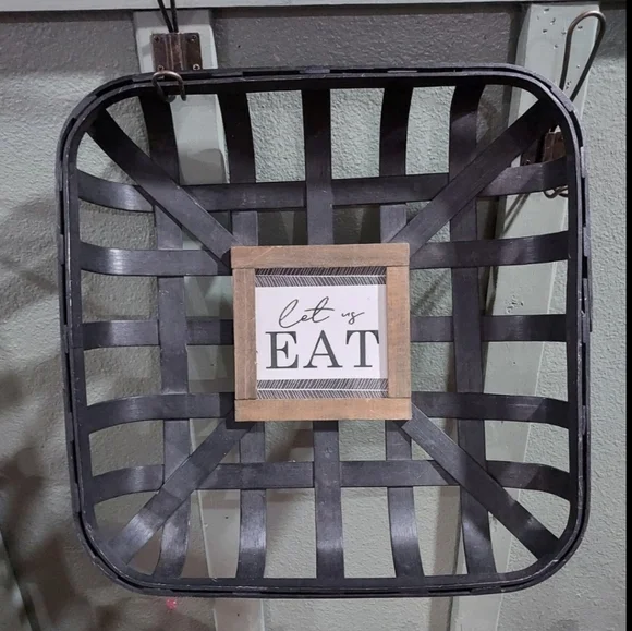 Let's EAT tobacco basket. Perfect addition to your farmhouse decor. Item does has some spots were the black has rubbed off. Please see photos for damage.